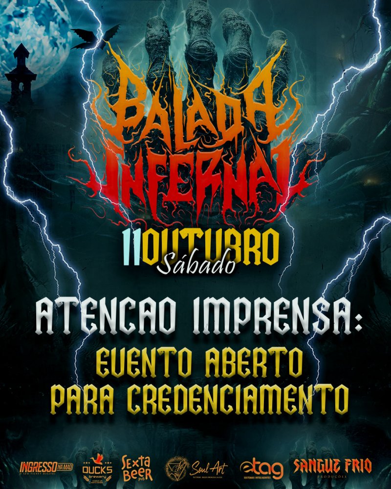 Para se credenciar, por favor, envie um e-mail para sfpresspr@sanguefrioproducoes.com ou diretamente pelo link https://contate.me/credenciamentobaladainfernal com o assunto "Credenciamento de Imprensa - Balada Infernal 10 Anos". No corpo do e-mail, inclua as seguintes informações: