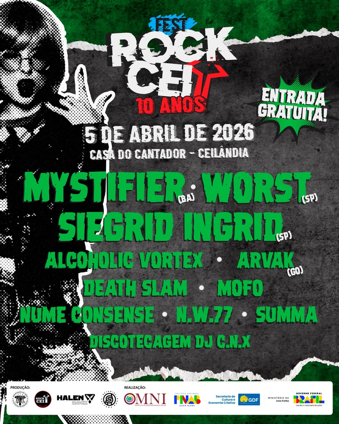 Em meio à divulgação do aclamado EP “Space Traumas: Part II - Attack Of The Yarells”, o quarteto apresenta seu Thrash Metal técnico e conceitual em um dos palcos mais emblemáticos de Ceilândia. O grupo aproveita a ocasião para antecipar o clima das gravações do capítulo final de sua trilogia espacial, dividindo o dia com nomes como Mystifier (BA), Worst (SP), Siegrid Ingrid (SP), Arvak (GO), Death Slam (DF) e outros. Confira abaixo o cartaz e o serviço completo para mais informações: