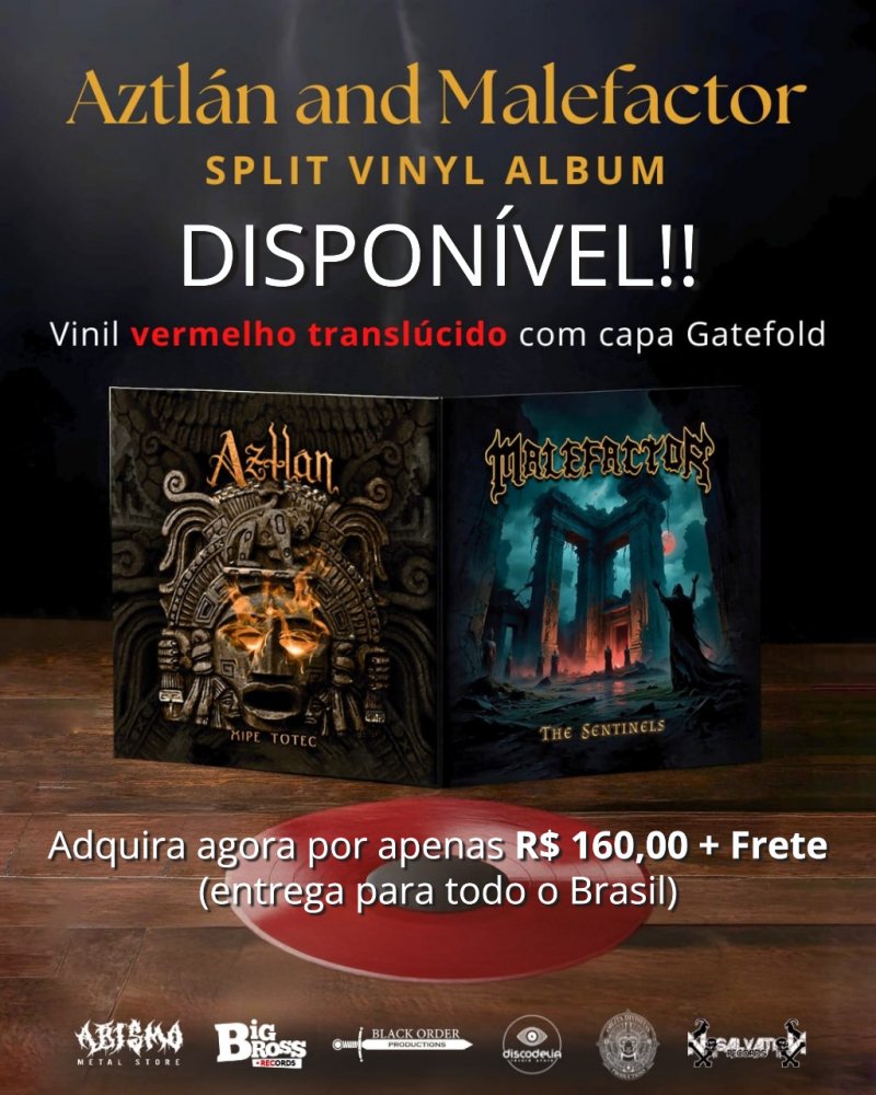 Unindo duas potências do Metal Extremo baiano, o AZTLÁN e o Malefactor lançam seu aguardado Split LP. O material, que apresenta os EPs "Xipe Totec" e "The Sentinels", já está disponível em um formato de luxo: vinil vermelho translúcido com capa gatefold, consolidando um dos lançamentos mais importantes da cena nordestina em 2025.