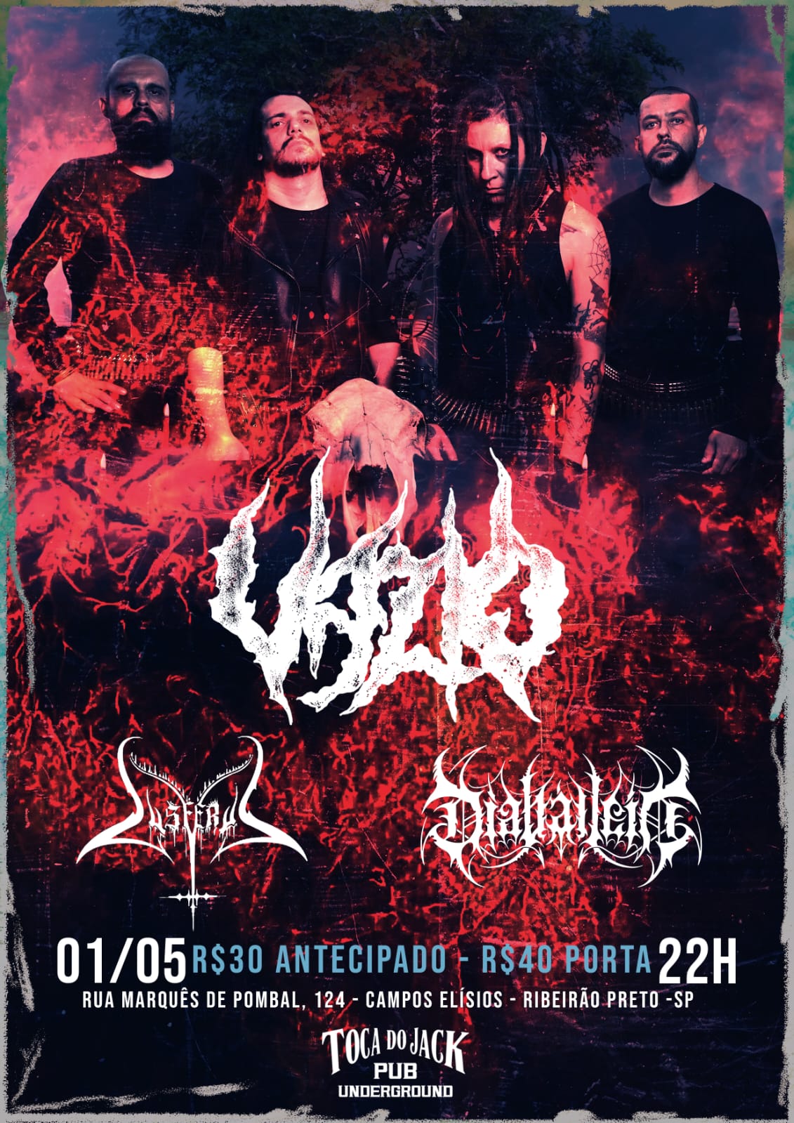 Em uma celebração ao Metal extremo, o DIABÁLLEIN retorna aos palcos de Ribeirão Preto no dia 01 de maio de 2026. O evento ocorre no Toca do Jack Pub Underground (@toca_pub_underground), contando também com as apresentações das bandas Vazio e Lusferus.