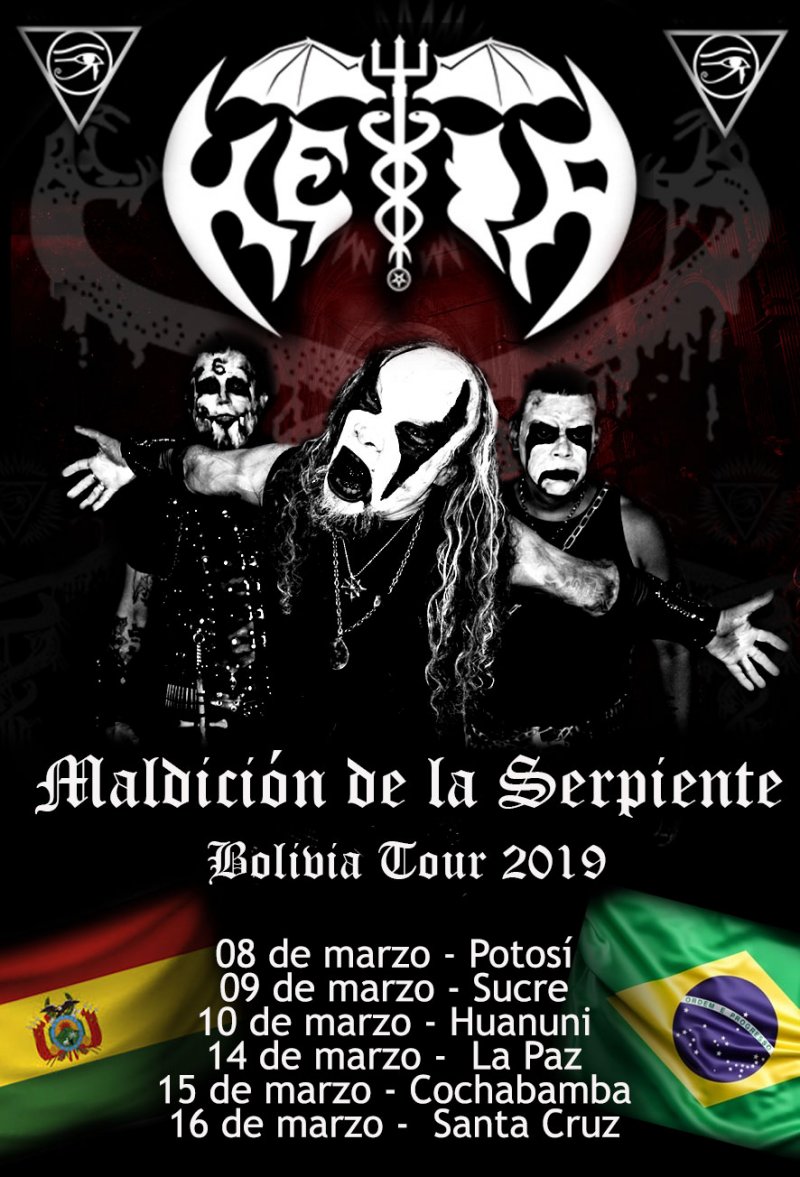 O último show da “Maldicón De La Serpiente Bolivia Tour 2019” acontece em Santa Cruz, no dia 16/03, e o grupo estará dividido palco com Serpiente Profana, Profanación, Bemdesar e Lord Satan. Cartaz completo: