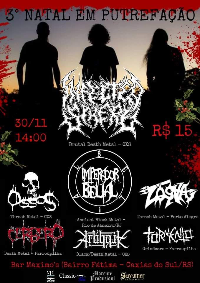 A banda estará no próximo dia 30/11 em Caxias do Sul/RS, onde acontece a terceira edição do ‘Natal Em Putrefação’, que conterá também com Infected Sphere, Losna, Cérbero, ArkhaiK, OssoS e TxAx, confira o cartaz: