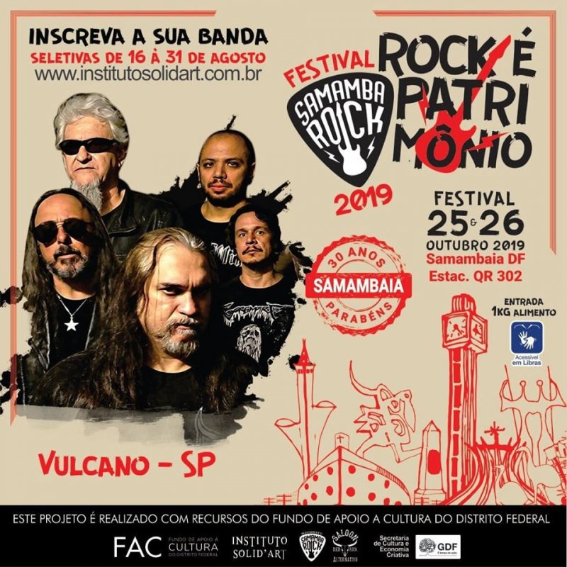 Contagem regressiva para o retorno do VULCANO aos palcos do Distrito Federal após 8 anos. A banda se apresenta neste fim de semana no ‘Festival Samamba Rock 2019’, que acontece na cidade de Samambaia/DF.