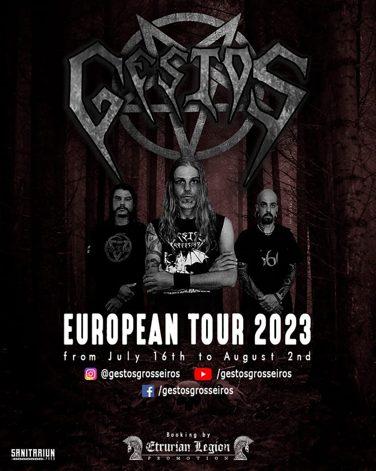 Visando ampliar a divulgação do vindouro álbum “Blasphemous Words” o GESTOS anunciou sua que estará embarcando para a Europa novamente no início deste segundo semestre. A ‘European Tour 2023’ está sendo organizada pela Etrurian Legion Promotion acontecerá entre julho e agosto deste ano, com planos de passar por mais de 5 países em aproximadamente 15 apresentações, confira: