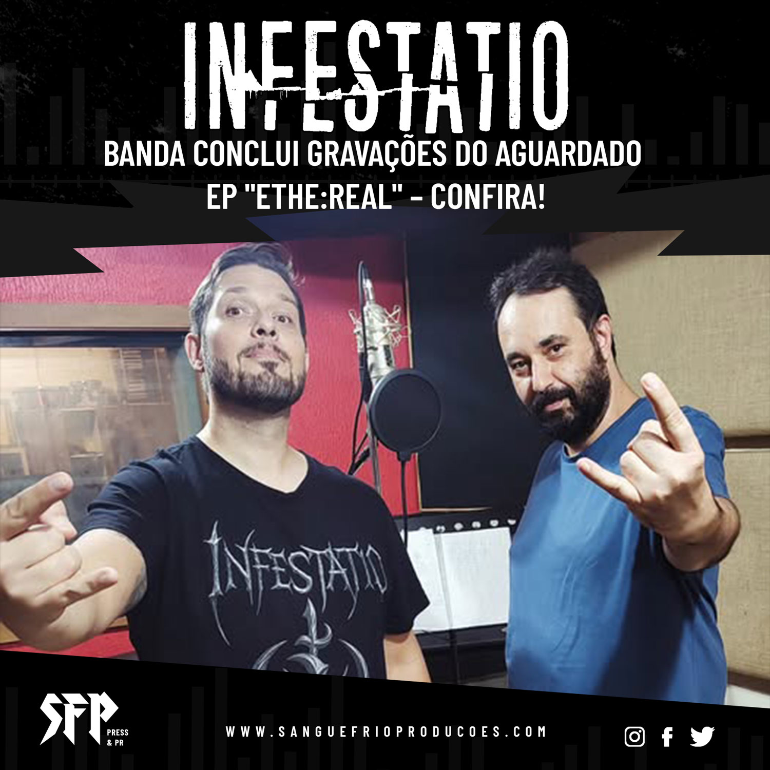 Em uma publicação recente, o INFESTATIO compartilhou a notícia com seus seguidores, agradecendo aos profissionais envolvidos na produção. A banda declarou: “Agora tudo está gravado… finalmente terminamos as vozes do EP!! Calma… ainda não é hora dos agradecimentos…, porém, já gostaria de adiantar algumas coisas, sem esses caras, o Cris Dafré (que trabalho brilhante produzindo as vozes) e o Gabriel Estrela, que está longe, pra variar, esse novo trabalho não teria visto a luz do dia…”