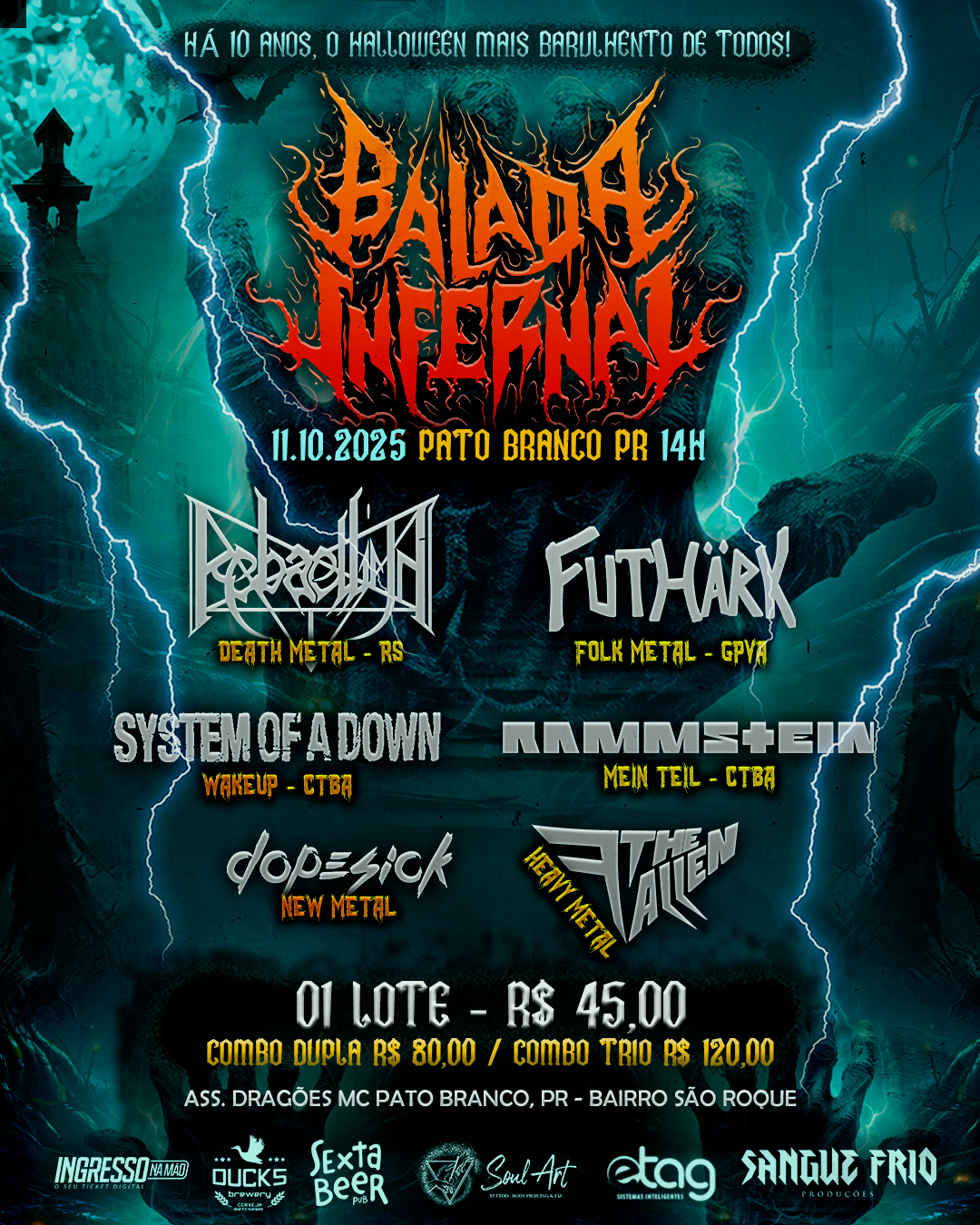 Após a confirmação de todas as atrações para a edição ‘Metal Terror’, que celebra os 10 anos do tradicional festival paranaense BALADA INFERNAL, apresentamos as bandas que prometem uma destruição sonora na cidade de Pato Branco/PR. O evento está agendado para o dia 11 de outubro de 2025.