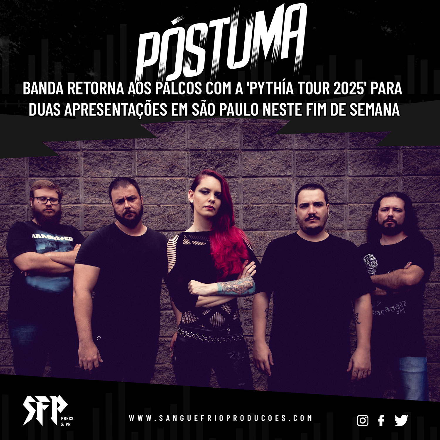 Após uma breve pausa nos palcos, a banda de Melodic Death Metal PÓSTUMA retoma com força total as atividades da sua bem-sucedida ‘Pythía Tour 2025’. O grupo se prepara para um fim de semana intenso com duas apresentações agendadas no estado de São Paulo, nas cidades de Campinas e Americana.