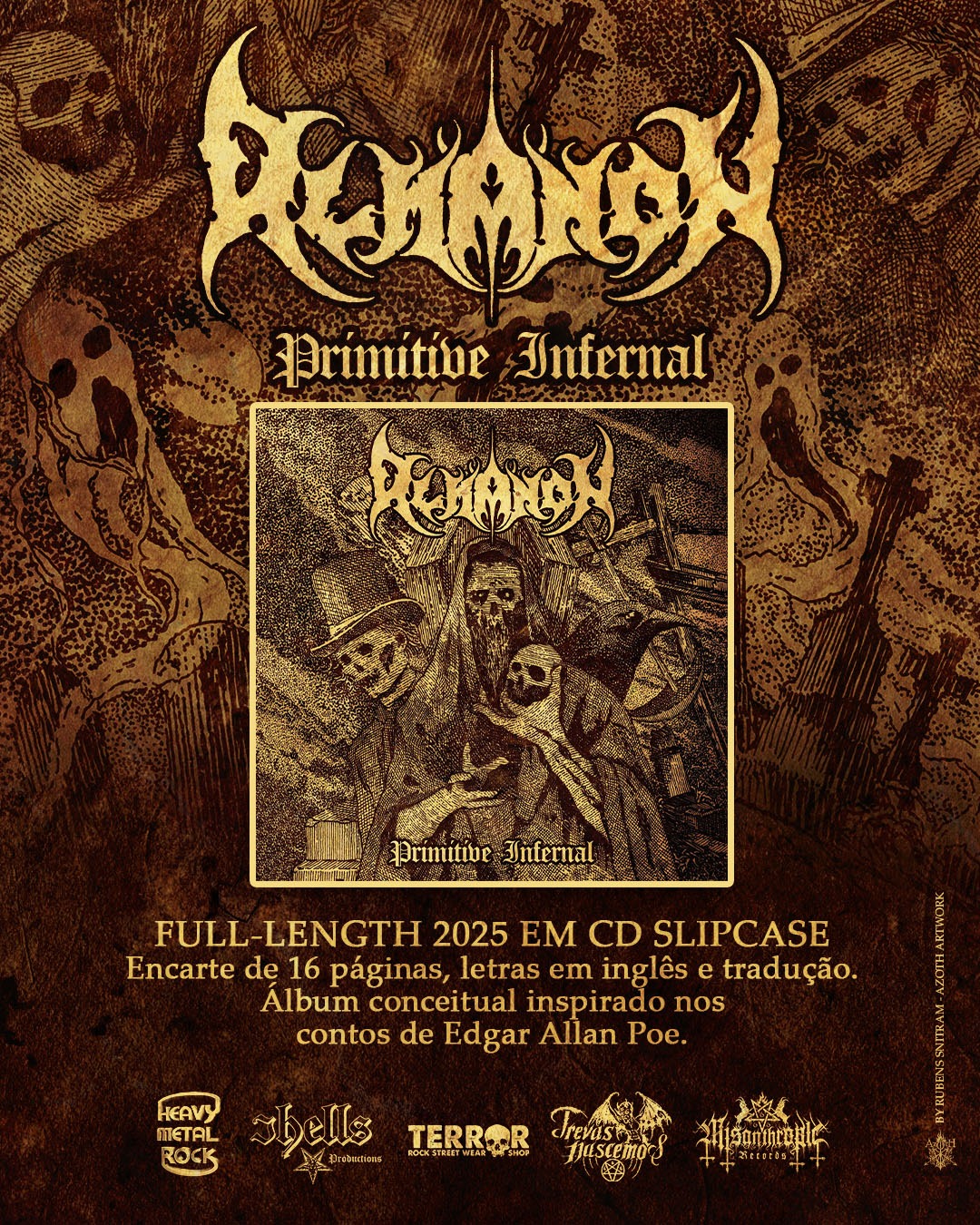 A banda de Extreme Metal sul-mato-grossense, ALMANON, anunciou o lançamento oficial da versão física de seu mais recente álbum, “Primitive Infernal”. O material, muito aguardado pelos fãs, chega ao público através de uma colaboração entre cinco selos do underground nacional e já está disponível para aquisição.