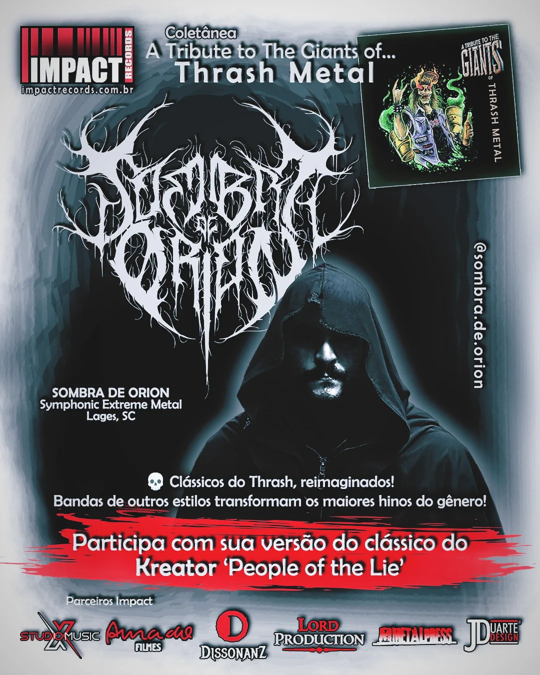 O projeto brasileiro de Extreme Symphonic Metal SOMBRA DE ORION, liderado pelo músico Daniel de Oliveira, foi confirmado na coletânea internacional ‘A Tribute to The Giants of Thrash Metal‘, organizada pelo selo Impact Records.