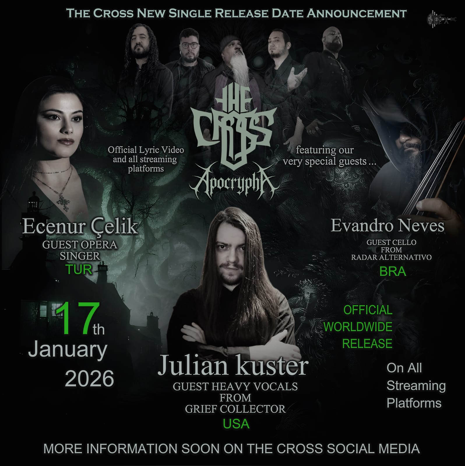 A contagem regressiva para um dos lançamentos mais aguardados do Doom Metal sul-americano entrou em sua reta final. Neste sábado, 17 de janeiro de 2026, o THE CROSS apresenta ao mundo seu primeiro trabalho do ano: o single “Apocrypha”. O lançamento ocorre em parceria com o selo digital Sangue Frio Records e estará disponível em todas as principais plataformas de streaming e download.