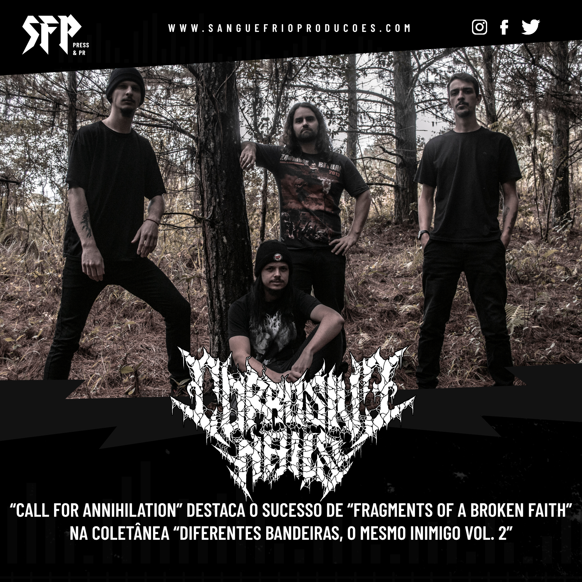 A faixa escolhida é “Call For Annihilation”, um dos pilares do álbum “Fragments Of A Broken Faith”, lançado digitalmente com excelência em 2025. A participação antecipa a chegada da versão física do disco, prevista para maio de 2026 pelo selo paranaense Lambrequim, reforçando o atual estágio produtivo do grupo.