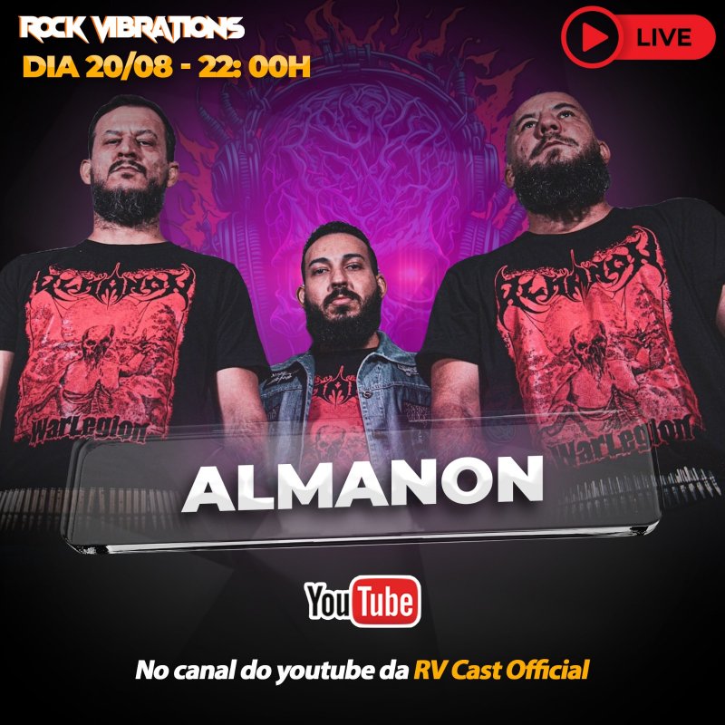 Prestes a lançar a versão física de seu aclamado álbum “Primitive Infernal”, a banda sul-mato-grossense de Metal Extremo ALMANON será a atração principal do RV Cast nesta semana. A entrevista, conduzida pelo apresentador Vinny Almeida, acontecerá nesta quarta-feira, 20 de agosto de 2025, a partir das 22 horas, com transmissão AO VIVO pelo canal Rock Vibrations (@rockvibrationsofficial), no YouTube.