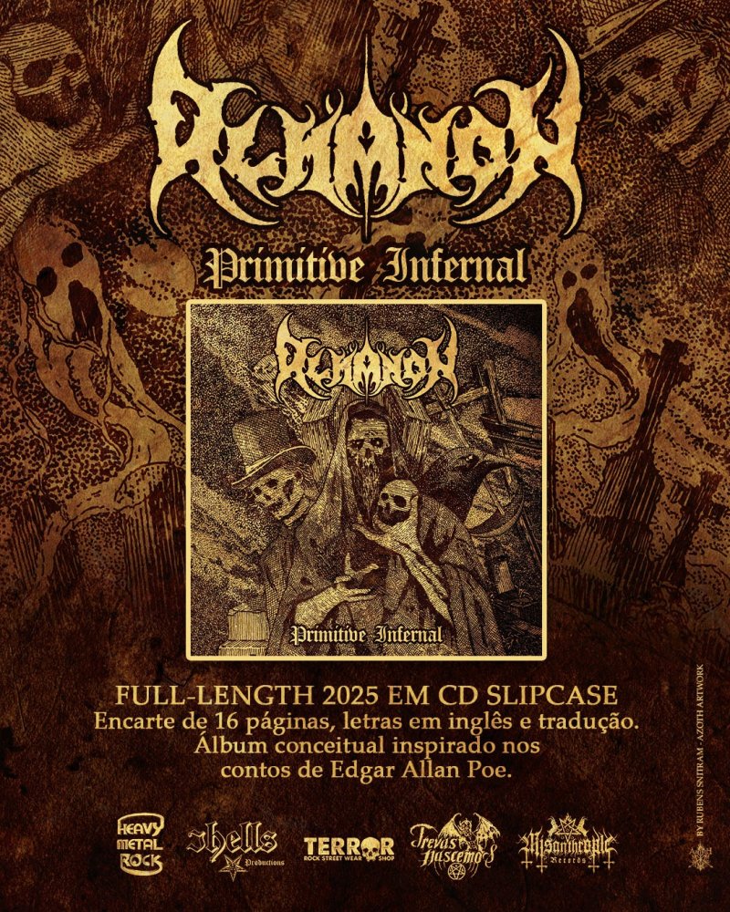 A banda de Extreme Metal sul-mato-grossense, ALMANON, anunciou o lançamento oficial da versão física de seu mais recente álbum, “Primitive Infernal”. O material, muito aguardado pelos fãs, chega ao público através de uma colaboração entre cinco selos do underground nacional e já está disponível para aquisição.