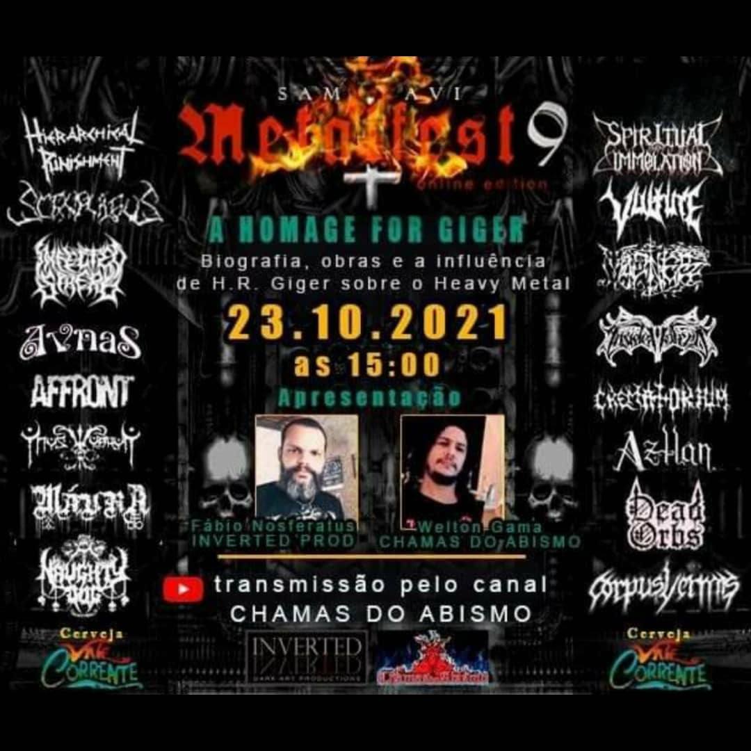 Os baianos estarão ao lado de nomes como Vulture, Crematorium, Affront, Corpus Vermis, Hierarchical Punishment e entre outros neste festival que acontecerá no próximo fim de semana, dia 23/10/2021 a partir das 15 horas, com transmissão ao vivo pelo YouTube, confira o cartaz: