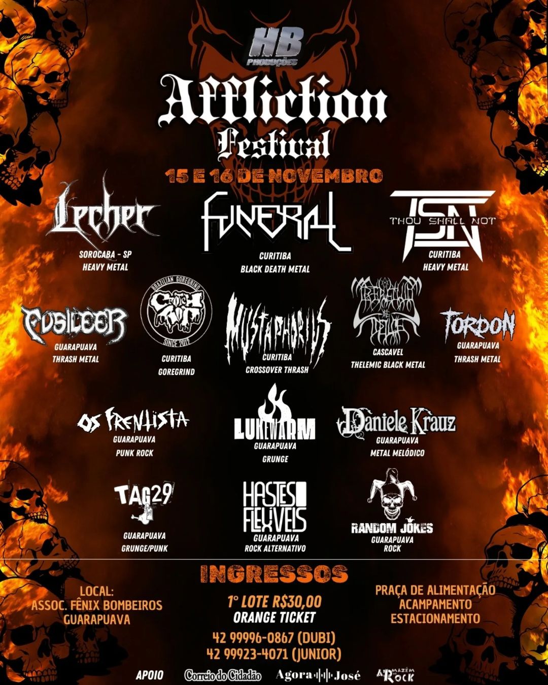 A 6ª edição do ‘Affliction Festival’ será realizada neste fim de semana, nos dias 15 e 16 de novembro, na Associação Fênix Bombeiros. O evento contará com um line-up de peso, incluindo bandas como Crotch Rot, Lecher, Thou Shall Not, Funeral, Crepúsculo dos Ídolos, Fusileer e muito mais. Confira abaixo o cartaz e o serviço completo para mais informações: