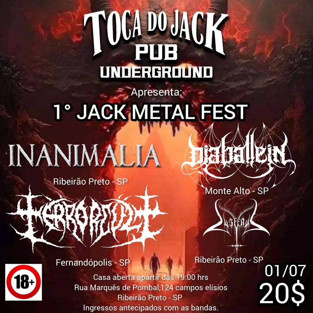 A banda estará ao lado de Inanimalia, Terrorcult e Lusferus na primeira edição do ‘Jack Metal Fest’, que acontece na Toca do Jack Pub Underground neste sábado, dia 01/07/2023, confira abaixo o cartaz completo e serviço do evento para mais informações: