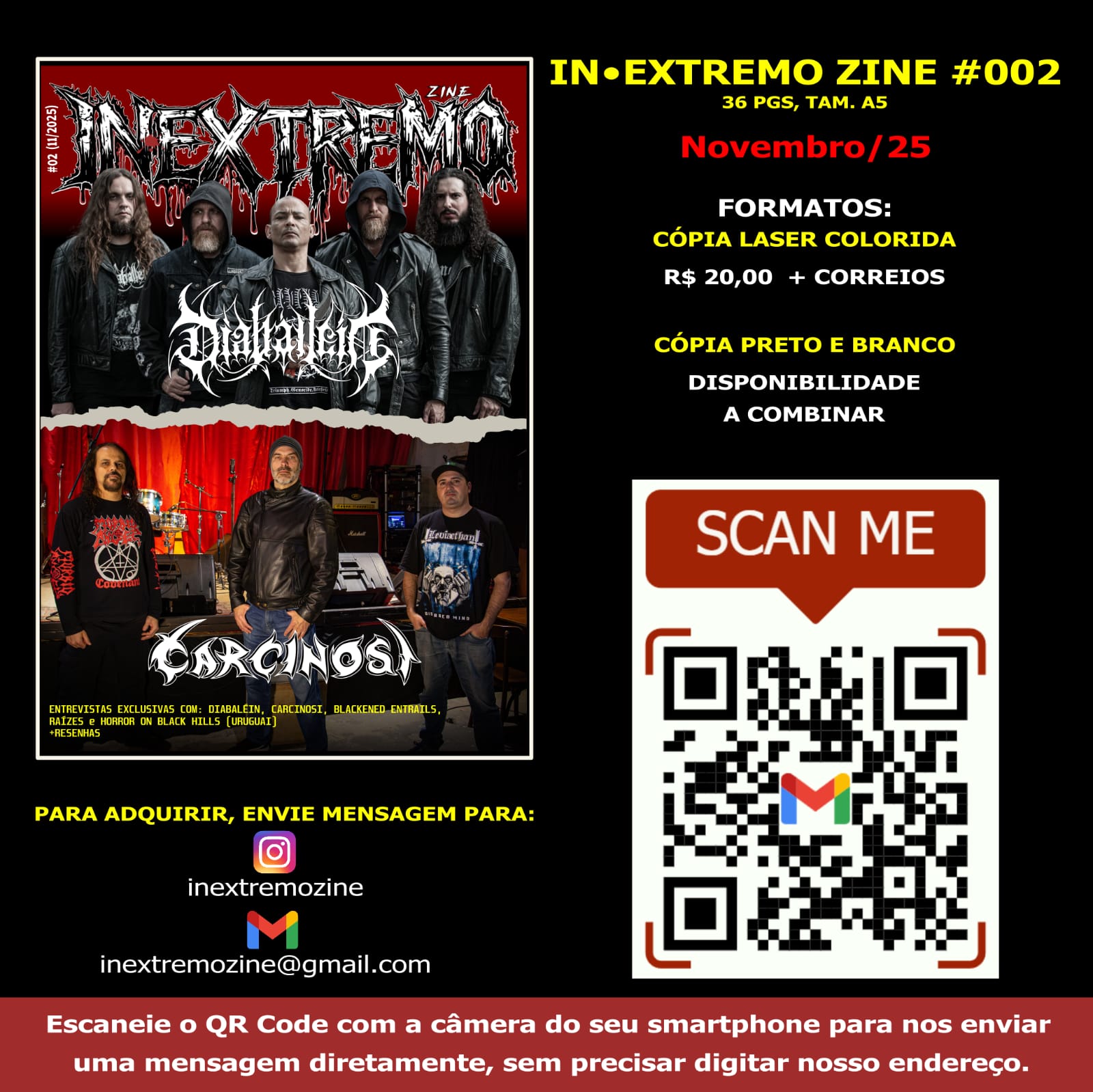 Para adquirir a edição física e conferir o conteúdo na íntegra, o contato deve ser feito diretamente com a redação do In Extremo Zine pelo e-mail inextremozine@gmail.com, via Instagram em @inextremozine ou acessando o QR Code disponível no material de divulgação abaixo: