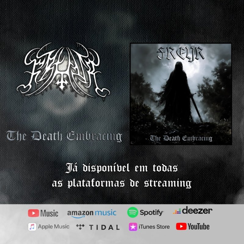 A espera acabou! “The Death Embracing”, o novo álbum da banda catarinense de Black Metal FREYR, está finalmente disponível. Lançado de forma independente em todas as principais plataformas de streaming e download na última sexta-feira (03/05), o álbum já pode ser ouvido na íntegra e gratuitamente CLICANDO AQUI.