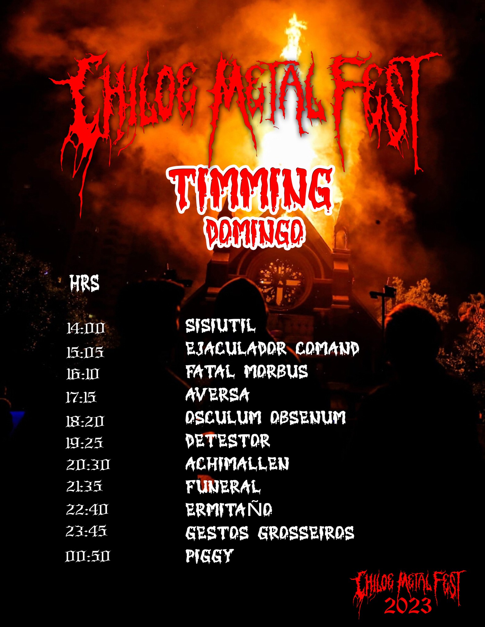 No dia seguinte o GESTOS viaja até Isla de Chiloé, onde estarão no ‘Chiloe Metal Fest’, um dos maiores festivais underground do Chile, que acontecerá entre os dias 10 e 12 de fevereiro e a banda marcará presença no terceiro dia de festival, veja: