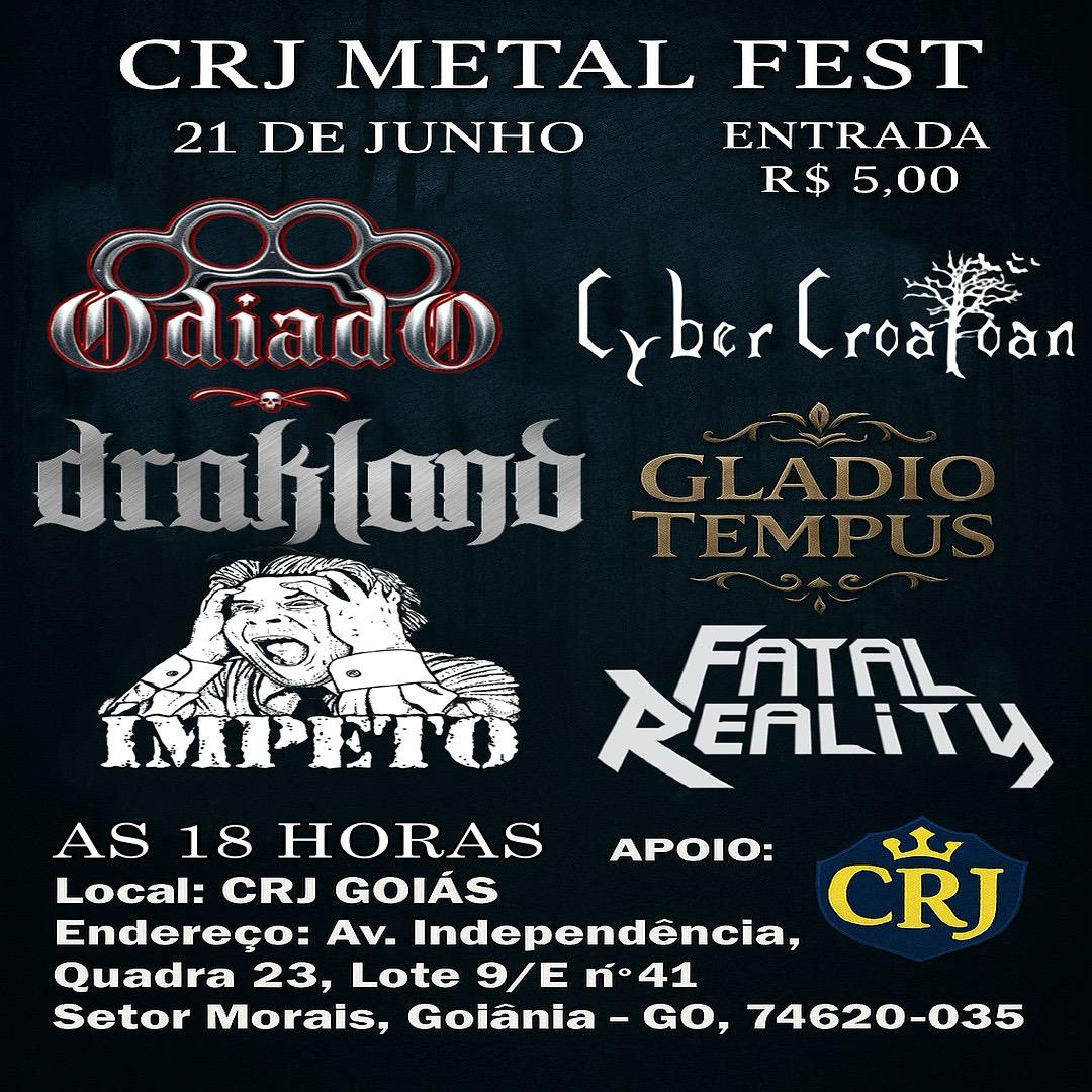 Além da participação no festival online, o GLADIO TEMPUS também confirmou presença no ‘CRJ Metal Fest’, que ocorre em 21 de junho (sábado), no CRJ Goiás, em Goiânia. O evento reunirá seis nomes representativos da cena underground: DrakLand, Odiado, Cyber Croatoan, Ímpeto, Fatal Reality e o próprio GLADIO TEMPUS, prometendo uma noite intensa de peso e agressividade. Confira abaixo o cartaz e serviço completo para mais informações:
