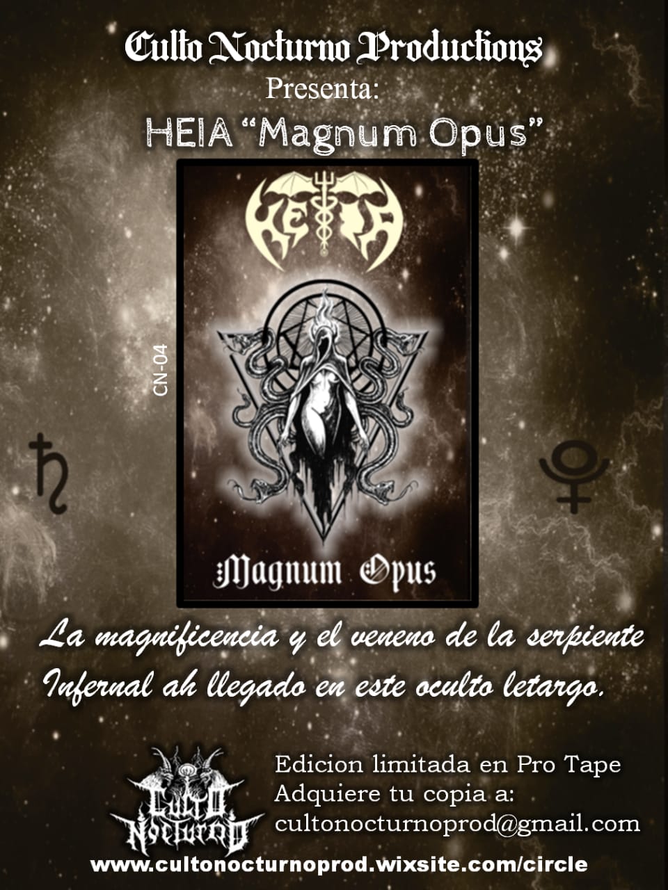 Mesmo trabalhando na divulgação do atual álbum, “Ordeal Of The Abyss”, os goianos da HÉIA seguem colhendo bons frutos do trabalho antecessor, “Magnum Opus”. Devido a ótima repercussão na mídia especializada e no grande número de vendas, o full length acaba de ganhar mais um relançamento internacional em pró-tape, desta vez, pelo selo argentino Culto Nocturno Productions, que estará disponibilizando este material no próximo dia 23/05 em uma edição limitada de 66 cópias, confira: https://cultonocturnoprod.wixsite.com/circle/news