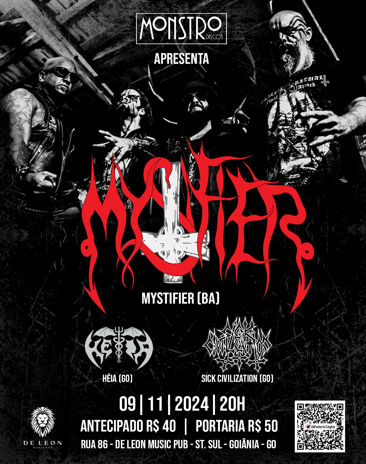Após um merecido descanso da “Darkness Forever Over Brazil Tour 2024”, a banda de Black Metal HÉIA retorna com tudo e acaba de ser confirmada em mais um importante festival. O quarteto estará ao lado de Mystifier e Sick Civilization no De Leon Music Pub em Goiânia/GO, no próximo dia 09//11 (sábado), em evento organizado pela Monstro Discos. Confira abaixo o cartaz e serviço completo para mais informações: