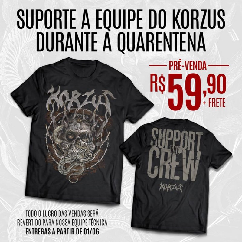 O intuito deste trabalho é apoiar a equipe da banda (roadies, técnico de som etc.) durante a pandemia do Covid-19 e terá todo o lucro revertido a eles. Com uma arte exclusiva desenvolvida pelo artista ALCIDES BURN, este lançamento único está disponível para pré-venda em todos os tamanhos por apenas R$ 59,90 (+ frete), podendo ser reservado pelo link a seguir (entregas a partir do dia 01/06): http://loja.korzus.com.br/pd-740696-camiseta-support-the-crew.html?ct=&p=1&s=1