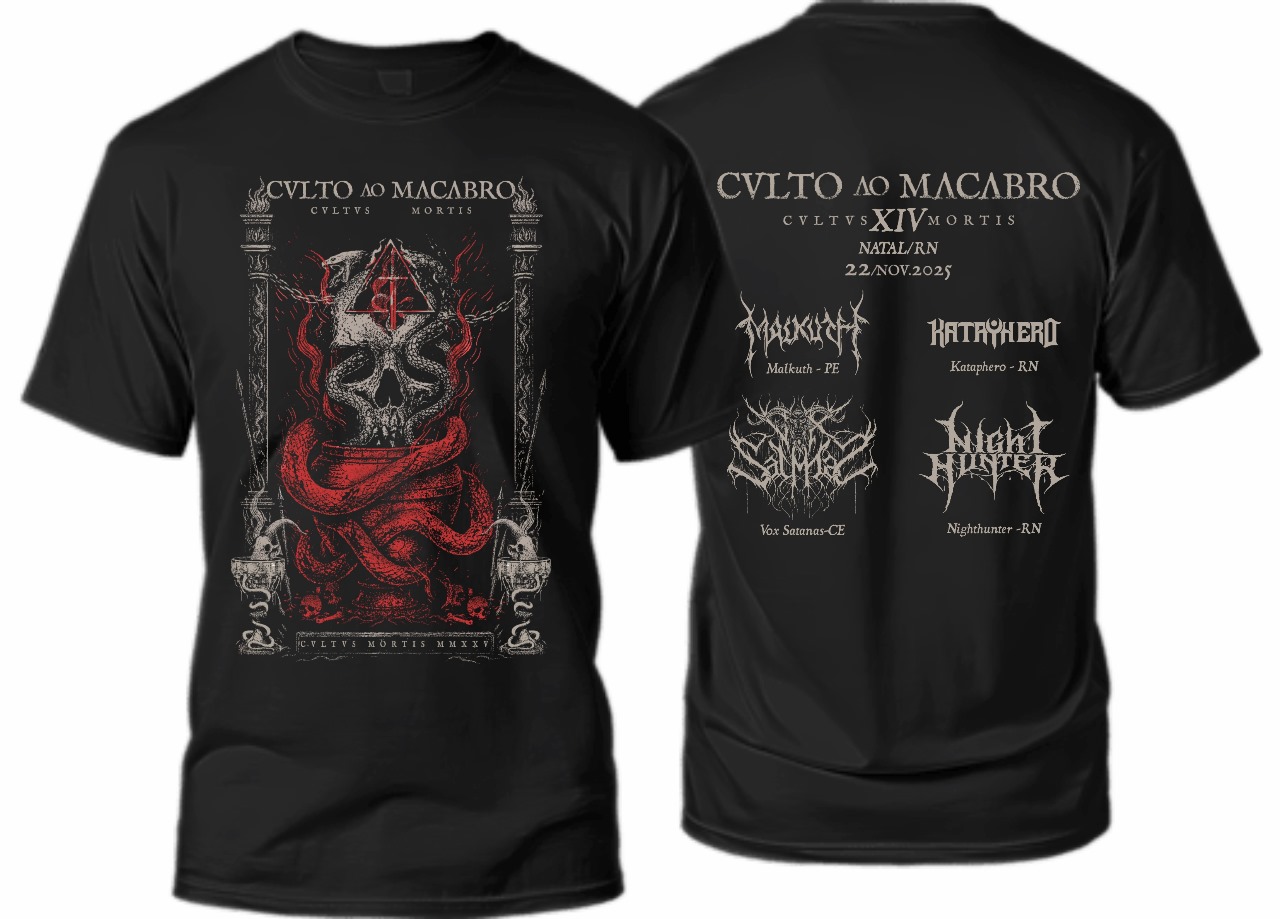 A organização do ‘14º Cvlto ao Macabro – Cvltvs Mortis’ anunciou que as camisetas oficiais do festival já estão disponíveis para aquisição em todos os tamanhos. Pacotes promocionais incluindo ingresso e camiseta podem ser consultados diretamente no perfil da Hela Prod em: https://www.instagram.com/hela_prod/