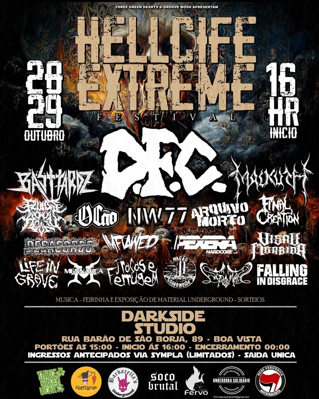 Mais um importante evento para a agenda da ‘Nordeste Tour 2023’ do MALKUTH é confirmado. A banda será uma das atrações principais, ao lado de Basttardz, D.F.C., Final Creation, Fluids Ov Agony e outros no ‘Hellcife Extreme Festival’, que acontecerá nos dias 28 e 29 de outubro — os pernambucanos se apresentarão no segundo dia (domingo) — no Darkside Studio em Recife/PE. Confira abaixo o cartaz e serviço completo para todas as informações: