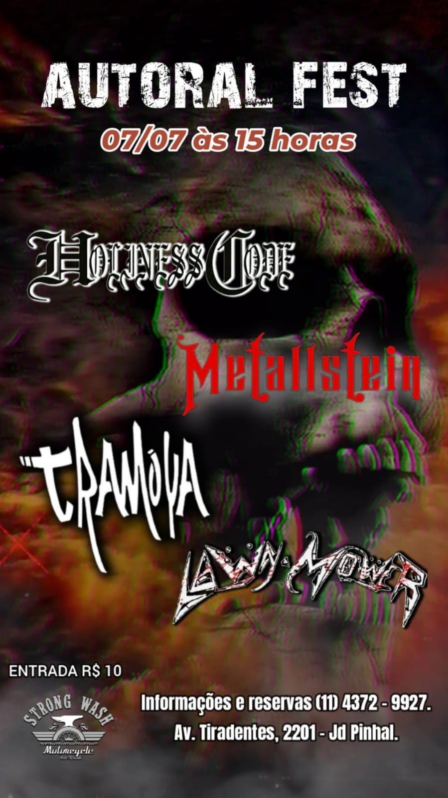 No domingo (07/07), o METALLSTEIN pega a estrada até Guarulhos/SP, onde se apresenta ao lado de Holiness Code, Tramoia e Laẅn Moẅer no ‘Autoral Fest’, evento que acontecerá no tradicional Strong Wash Motorcycle. Confira abaixo o cartaz e serviço completo para mais informações: