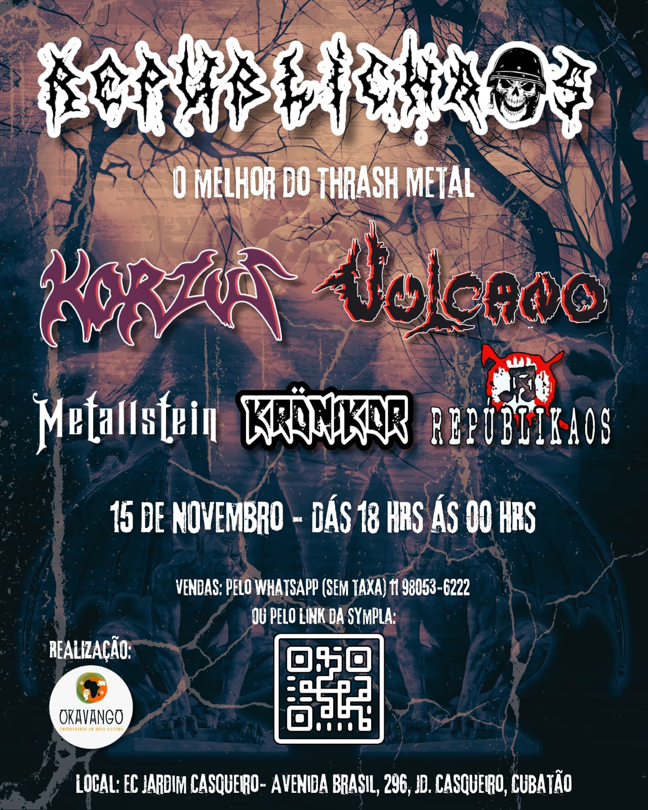 A contagem regressiva começou! A banda santista de Death/Thrash Metal, METALLSTEIN, já se prepara para um dos principais shows de sua agenda em 2024. Trata-se do festival ‘Republichaos – O Melhor do Thrash Metal’, que acontecerá na cidade de Cubatão/SP, neste fim de semana, 15/11, a partir das 18h, onde o quarteto dividirá o palco do Esporte Clube Jardim Casqueiro com ninguém menos que as lendas Vulcano e Korzus, e também com Krönikor e Repúblikaos. Confira abaixo o cartaz e o serviço completo para mais informações: