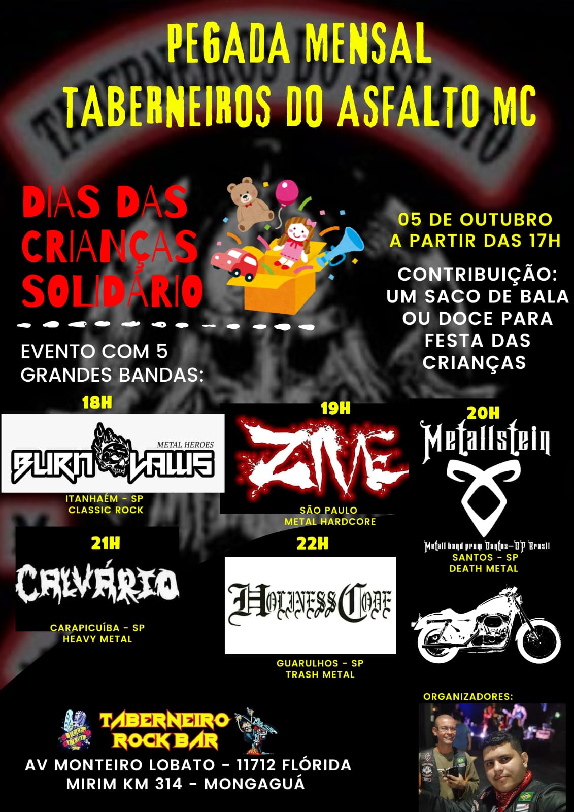 Neste sábado, 05 de outubro de 2024, o quarteto se apresentará na cidade de Mongaguá/SP, onde dividirá o palco com Calvario, Burn Laws, Zive e Holiness Code no ‘Dia das Crianças Solidário’, evento beneficente organizado pelos Taberneiros do Asfalto MC. Confira abaixo o cartaz e o serviço completo para mais informações: