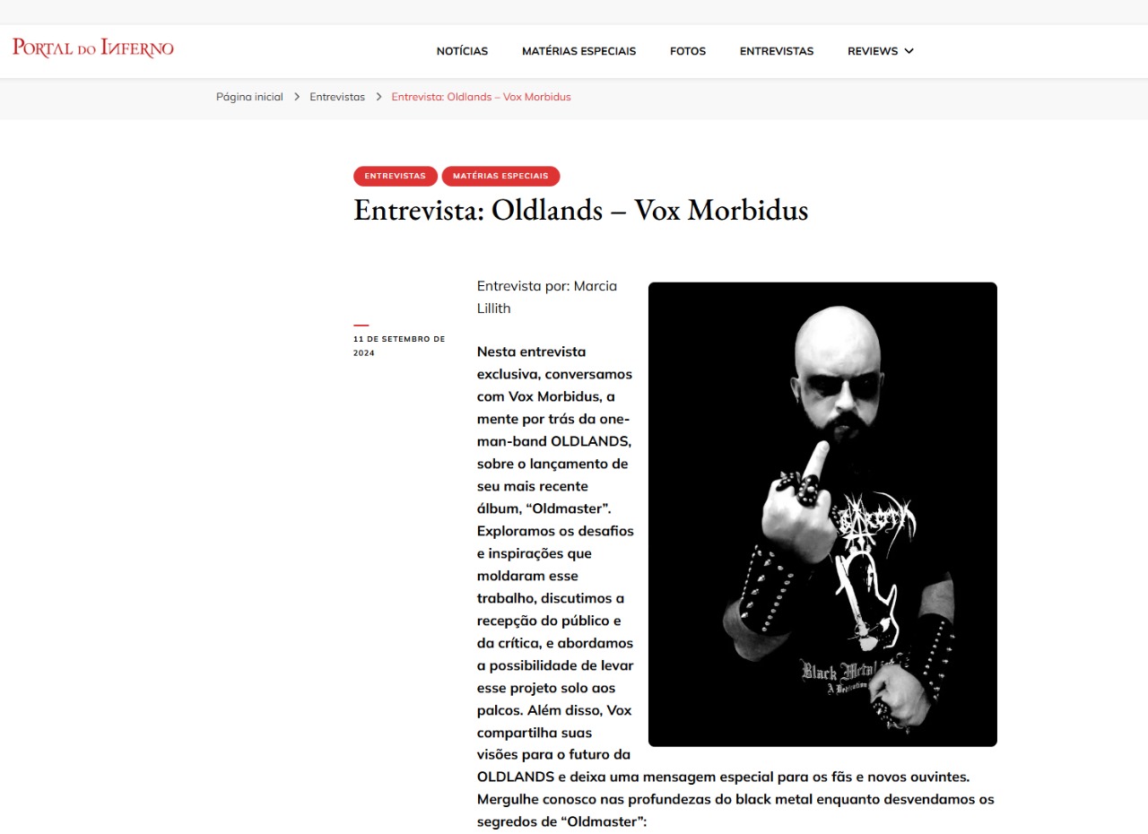 Após o lançamento do seu atual álbum, “Oldmaster”, o ‘one-man-band’ de Black Metal OLDLANDS ganhará mais um positivo destaque na imprensa especializada nos próximos dias.