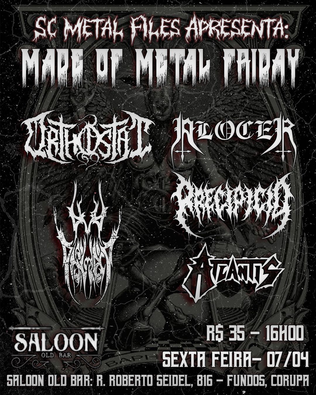 Seguindo com a ‘Radioactivity Tour 2023’, os catarinenses do ORTHOSTAT se preparam para pegar a estrada até Corupá/SC para se apresentarem no ‘Made Of Metal Friday’. O evento acontecerá no dia 07/04/2023 (sexta-feira), no ‘Saloon Old Bar’ e contará também com as bandas Alocer, Atlantis, Ar da Desgraça e Precipício, confira o cartaz: