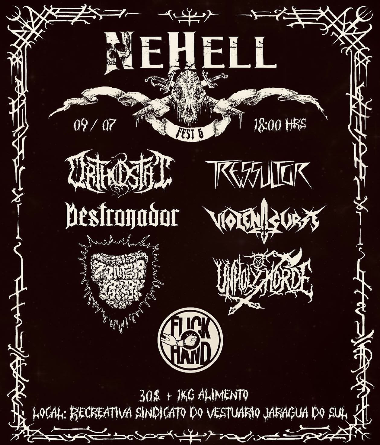 A banda estará ao lado de Zombie Cookbook, Tressultor, Unholy Horde, Violent Curse, Fuck Hand e Destronador na sexta edição do ‘Nehell Festival’, que acontecerá neste sábado (09/07) em Jaraguá do Sul/SC, confira: