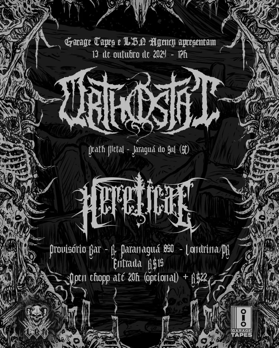 E para fechar esta trinca de shows no mais alto nível, a banda de Death Metal chega à cidade de Londrina/PR, no domingo (13), onde se apresentarão ao lado de Hereticae, no Provisório Bar. Confira o cartaz e serviço completo abaixo: