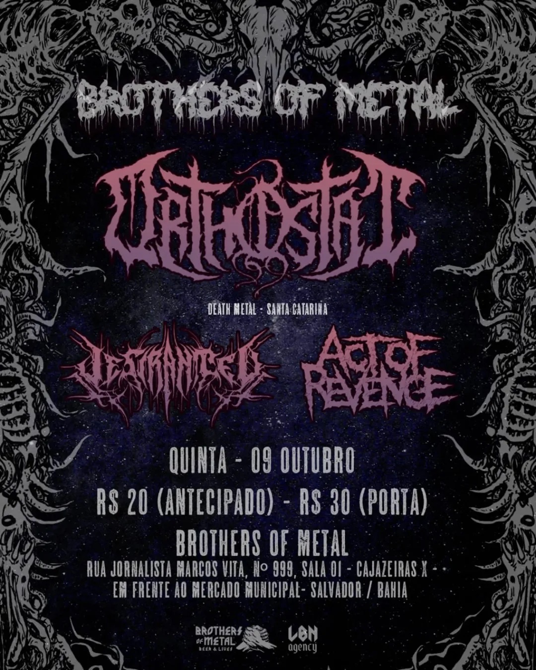 No dia seguinte, 10 de outubro, a banda desembarca em Jacobina/BA para o festival 'Jacobina Death Chaos', ao lado de Human, Headkrusher e Steel Fist, que acontece a partir das 21 horas no Jacombina Sport Bar (@jacombinasportbar). Confira:
