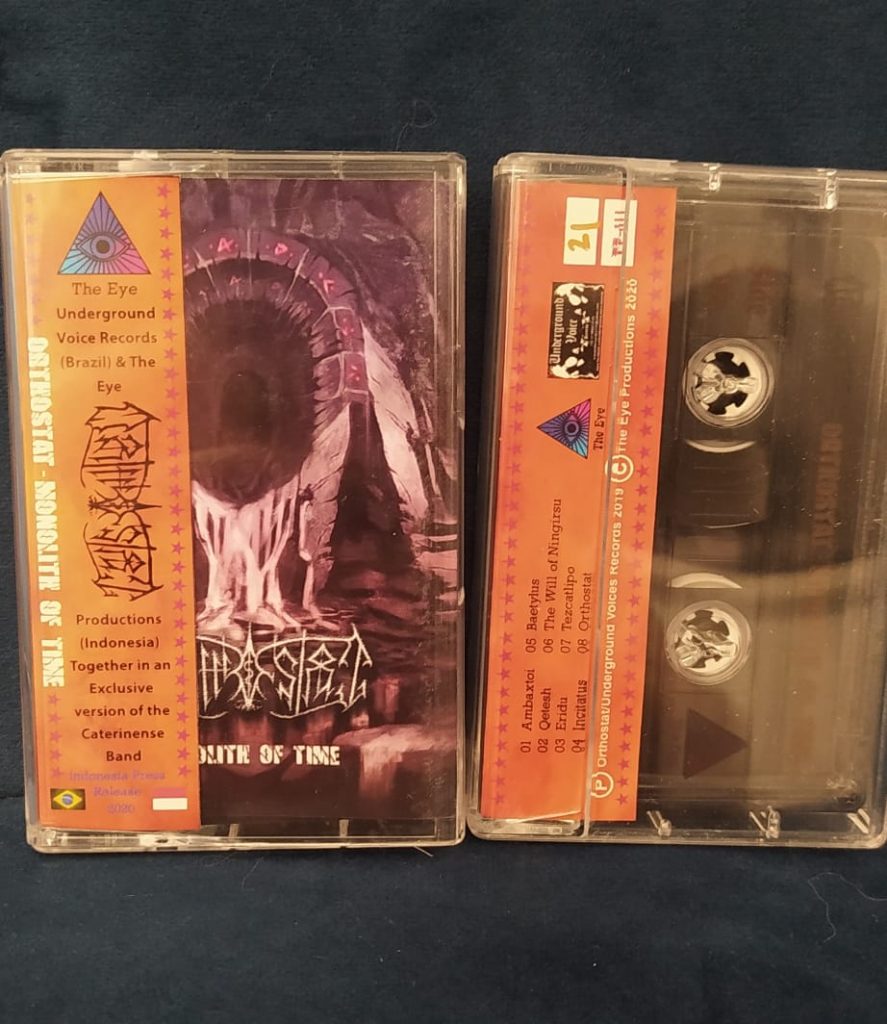 Os catarinenses do ORTHOSTAT anunciaram recentemente que “Monolith Of Time” foi disponibilizado nacionalmente em fita cassete pela Damnatio Memoriae Records, porém já se encontram esgotadas.