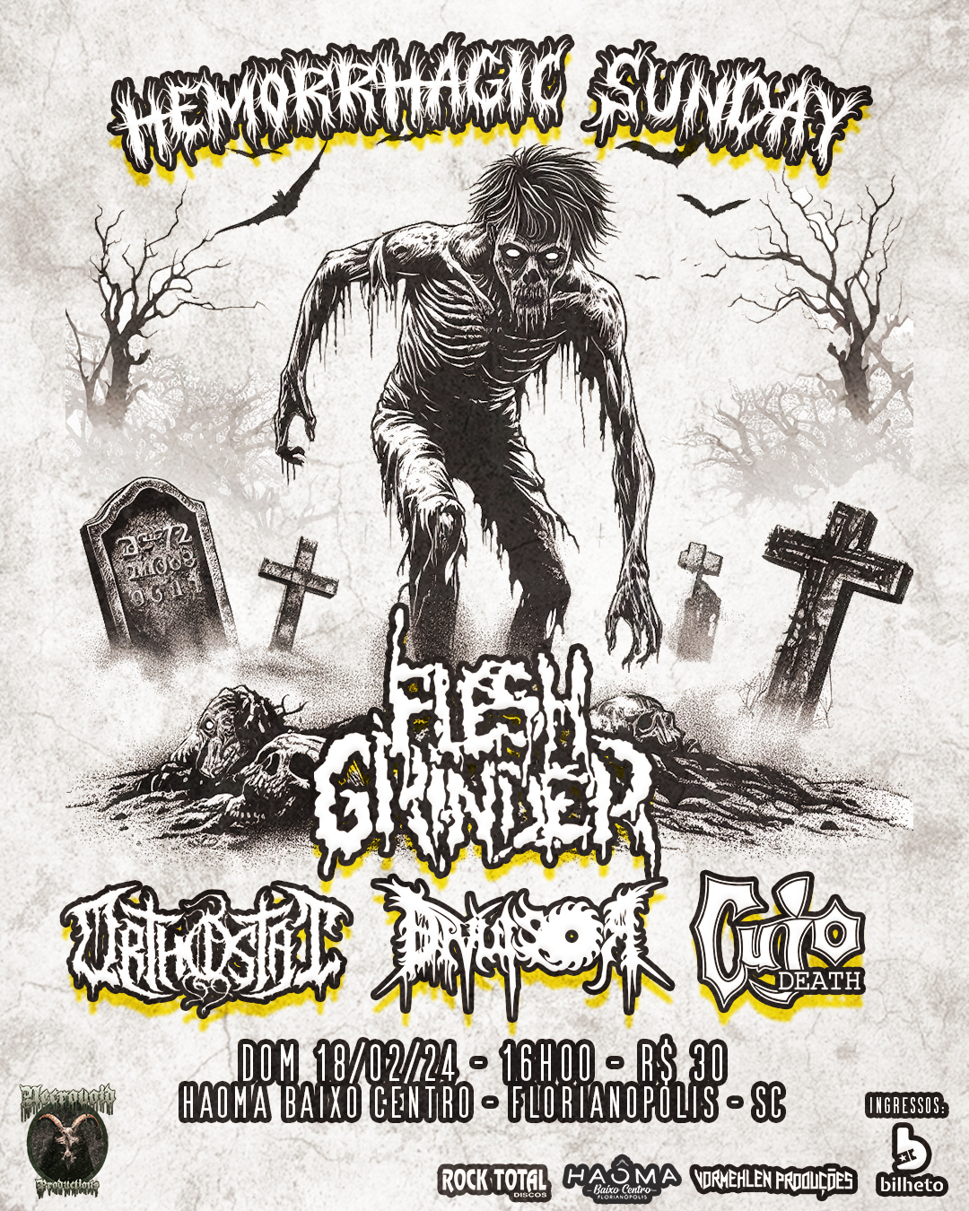No dia seguinte, 18/02/2024, o ORTHOSTAT e o Flesh Grinder pegam a estrada até Florianópolis/SC, onde se unem ao ‘one-man-band’ paranaense Divulsor e o Cujo Death para se apresentarem no ‘Hemorrhagic Sunday’, que acontece no Haôma Baixo Centro Bar. Confira abaixo o cartaz e serviço completo para mais informações: