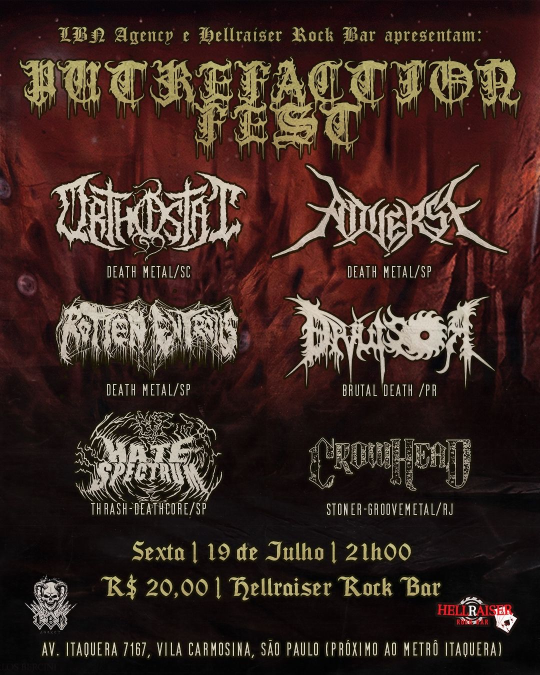 Na próxima sexta-feira (19/07), as bandas estarão na capital paulista para um evento destruidor, no Hellraiser Rock Bar, junto com Divulsor, Hate Spectrum, CrowHead e Adverse no ‘Putrefaction Fest’. Confira:
