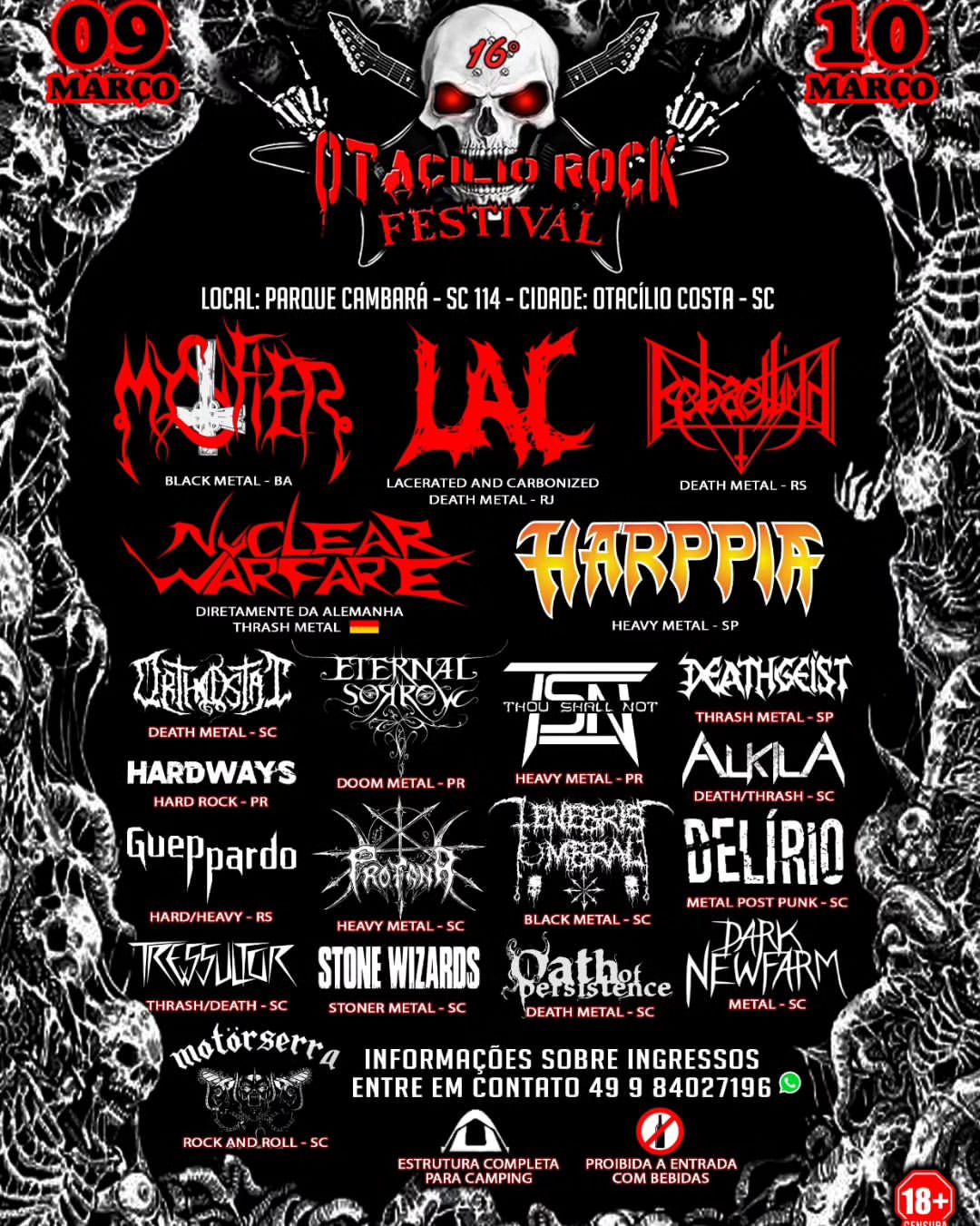 E para fechar esta miniturnê com chave de ouro, as duas bandas viajam até Otacílio Costa/SC para se apresentarem no segundo dia (10/03) do tradicional “Otacílio Rock Festival”, dividindo palco com outros grandes nomes do Metal nacional. Veja o cartaz completo abaixo: