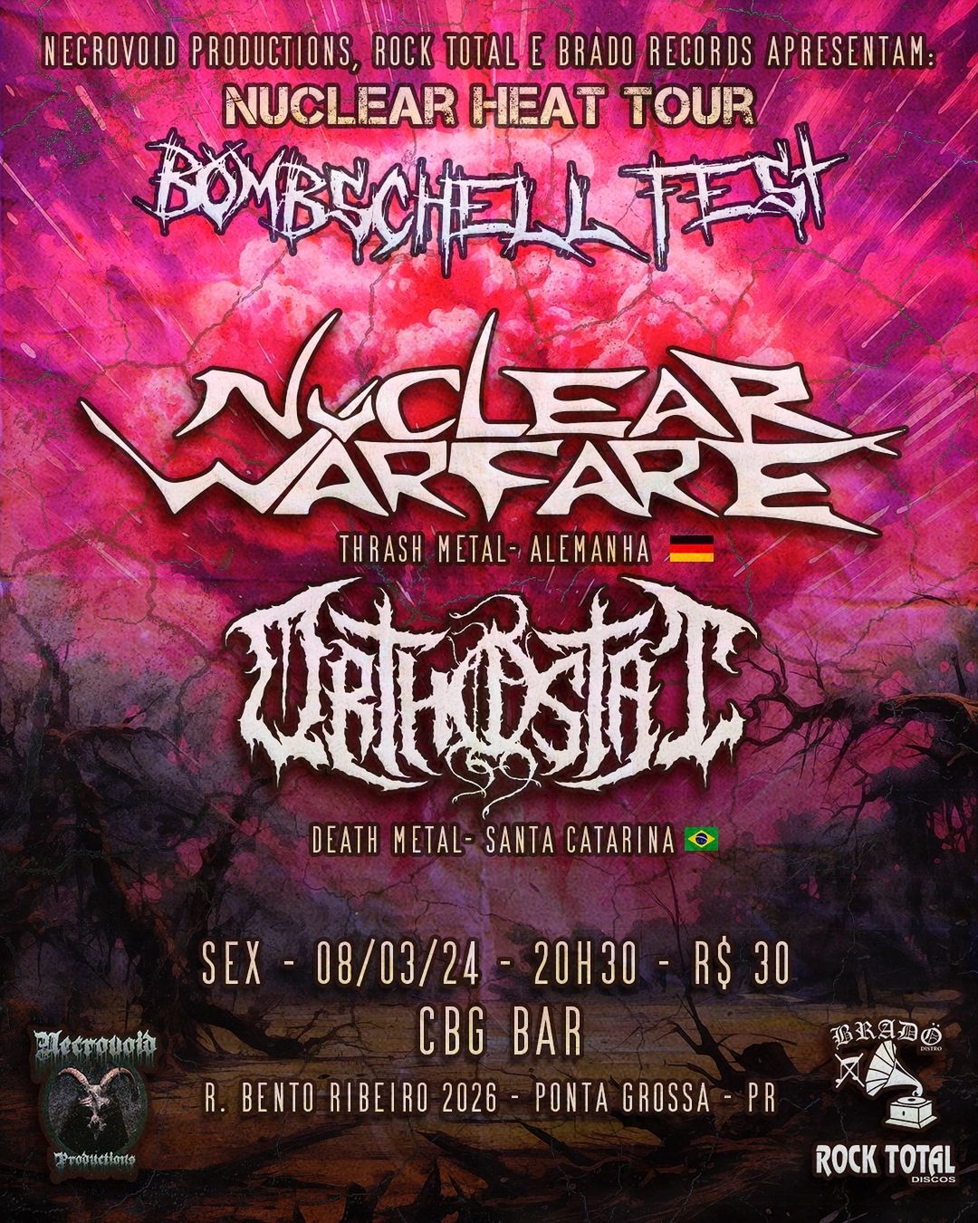 Na sexta-feira (08/03), as duas bandas desembarcam em Ponta Grossa/PR para se apresentar no ‘Bombschell Fest’, evento que ocorre no CBGbar às 20h e 30min. Veja o cartaz: