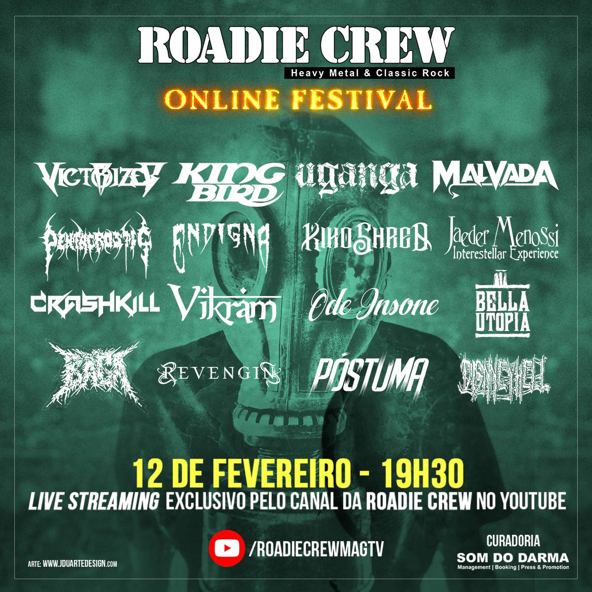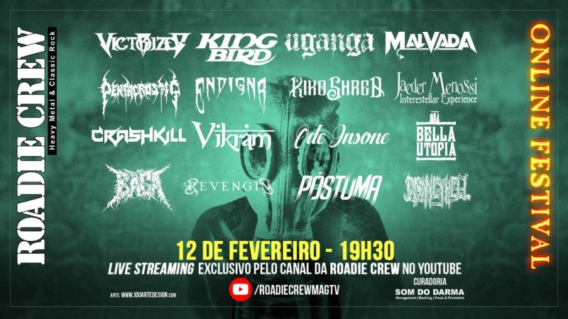Trata-se do ‘Roadie Crew Online Festival’, que acontecerá nesta sexta-feira (12/02/2021), com transmissão pelo canal oficial da revista Roadie Crew no YouTube, confira o cartaz: