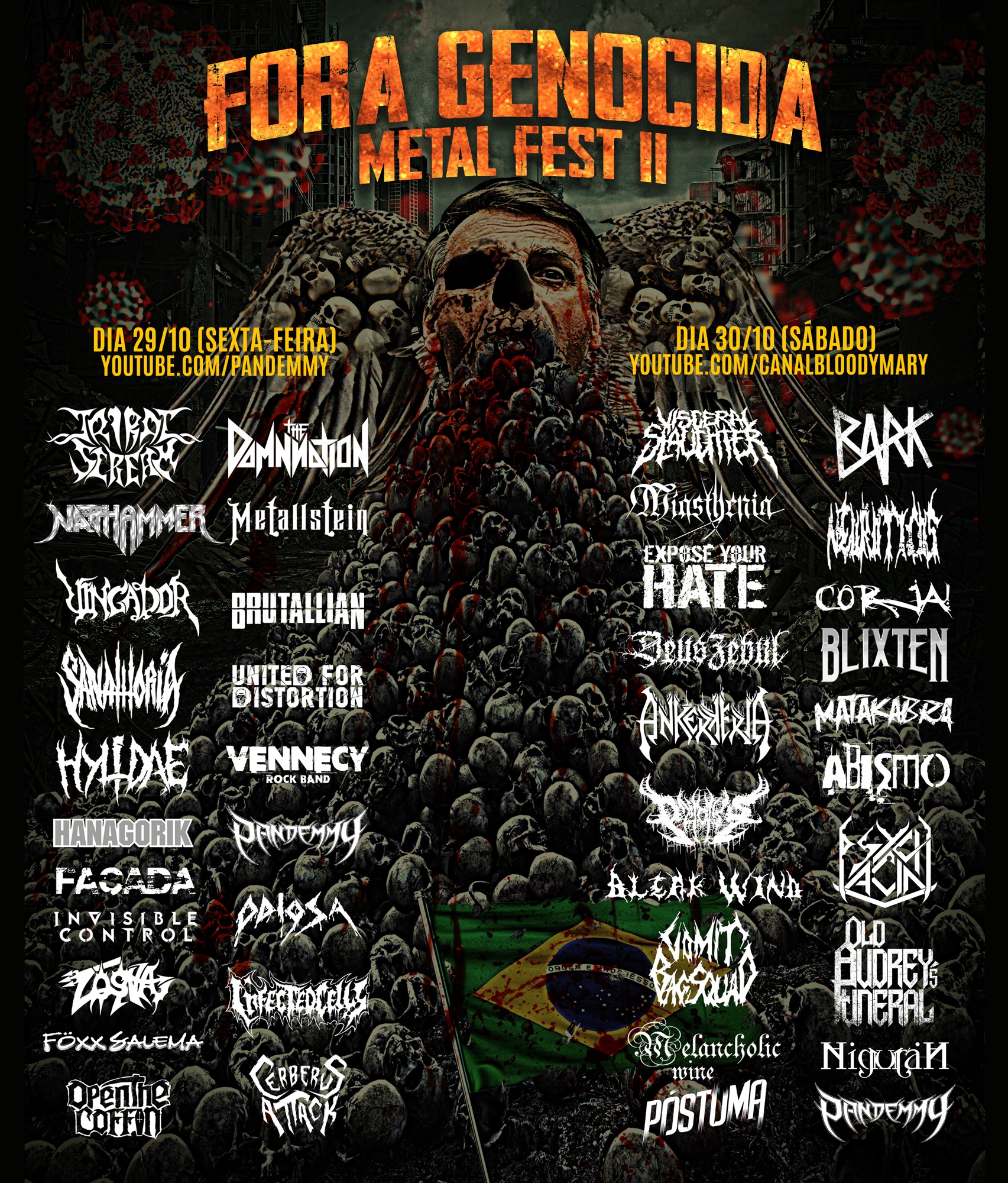 Local: YouTube: 29/10 – www.youtube.com/pandemmy | 30/10 - www.youtube.com/canalbloodymary