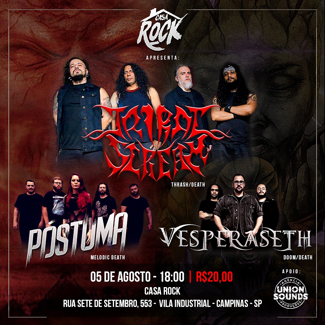 Nesta sexta-feira (05/08), a banda desembarca em Campinas/SP, onde se apresentam na Casa Rock, ao lado de Tribal Scream e Vesperaseth. Evento se iniciará às 18 horas, confira o cartaz:
