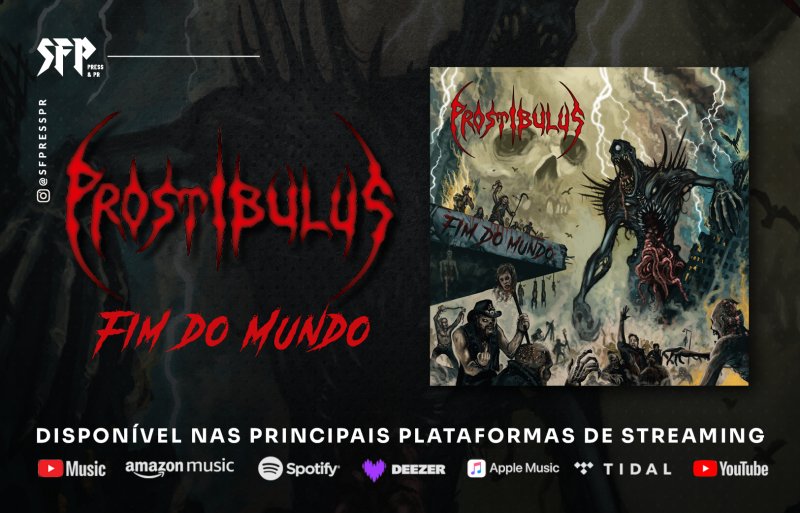 Foi finalmente lançado, no último dia 09/10/2024, o atual single da banda goiana de Death Metal PROSTIBULUS, intitulado “Fim Do Mundo”. O trabalho ingressou em todas as principais plataformas de streaming e download do mundo em parceria com o selo digital Sangue Frio Records e já pode ser ouvido AGORA acessando seu Listen.To oficial CLICANDO AQUI.