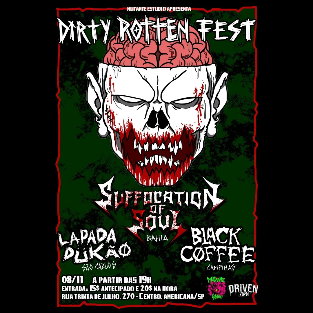 No dia 08/11, a partir das 19h, o quarteto parte para Americana/SP, onde participa do ‘Dirty Rotten Fest’ ao lado de Black Coffe e Lapada Dükão. Confira o cartaz: