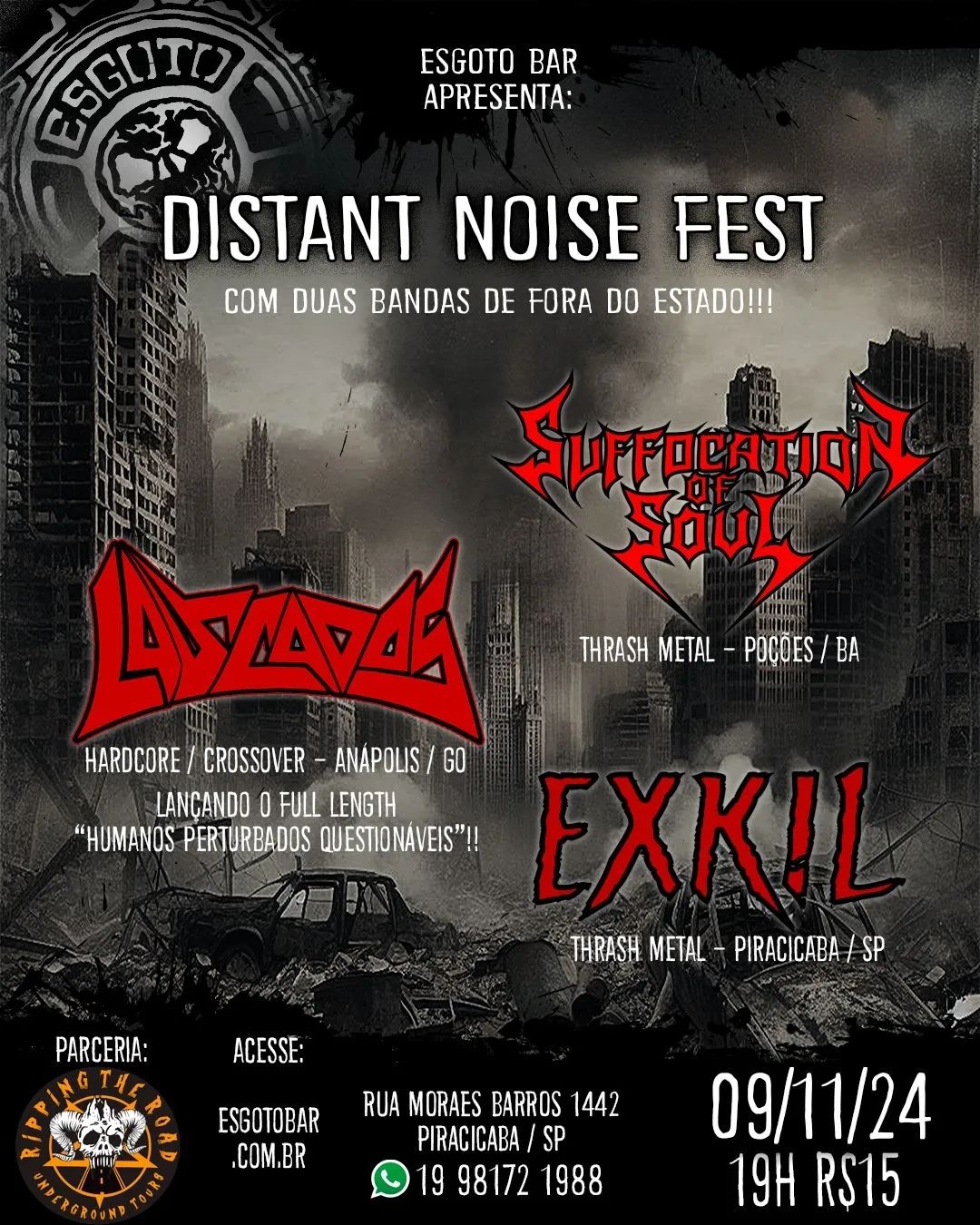A “LastHumanity Tour” segue com tudo e sua próxima parada será em Piracicaba/SP, no dia 09/11, onde o SUFFOCATION OF SOUL dividirá o palco do Esgoto Bar com Exkul e Lascados, a partir das 15 horas. Veja: