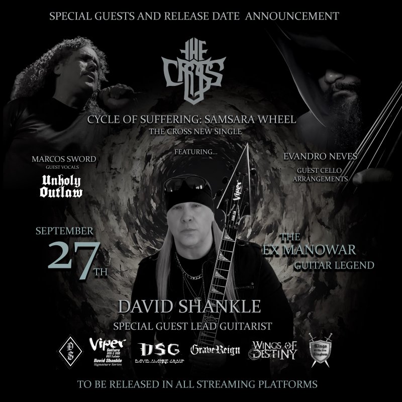 Além da colaboração de David Shankle, "Cycle of Suffering (Samsara Wheel)" contará com as contribuições de Marcos Sword nos vocais e Evandro Neves no violoncelo. Os fãs já podem seguir a THE CROSS em sua plataforma de streaming de preferência para conferir o lançamento em primeira mão através do link: https://li.sten.to/thecross.