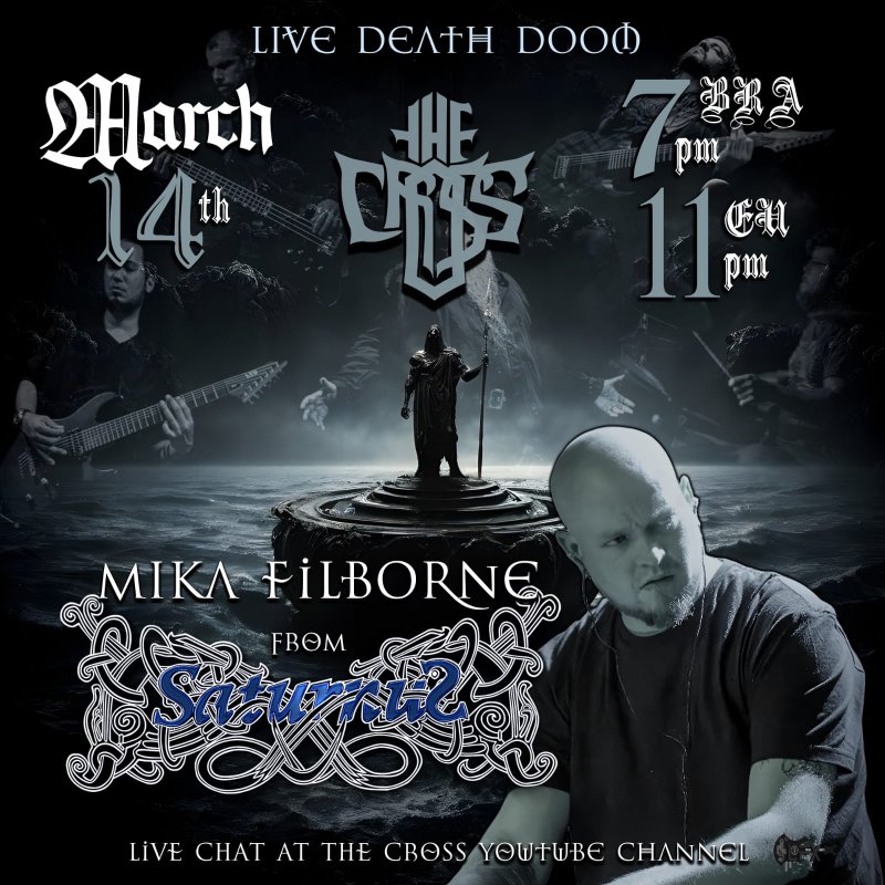 É HOJE! Nesta sexta-feira (14/03), a partir das 19 horas, a lendária banda brasileira de Doom Metal, THE CROSS, retoma sua tradicional série de lives, desta vez com um convidado especial: Mika Filborne, tecladista da icônica banda dinamarquesa Saturnus.